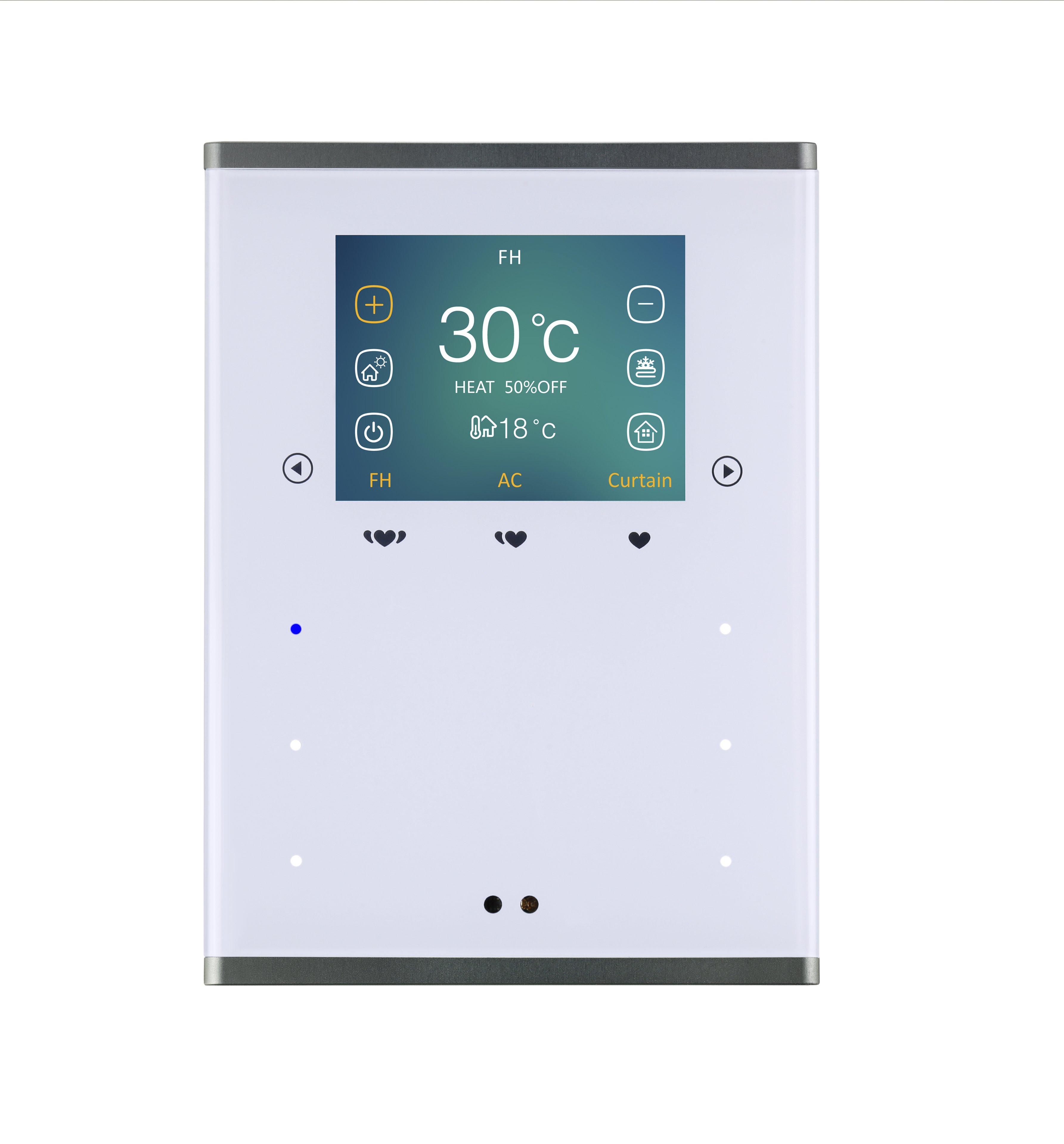 Ovládací panel Prism Pro multifunkční dotykový panel, s dotykovým LCD dipslejem a kovovým rámečkem,  barevně nastavitelné RGB LED podsvícení, spínání a stmívání světel, ovládání závěsů a žaluzií, řízení scén a sekvencí, audia, vytápění a klimatizace, volitelně IR přijímač, teplotní senzor, funkce Wake-up, zpětná hlasová vazba, vyžaduje sběrnicovou spojku HDL-MPPI.46-A.