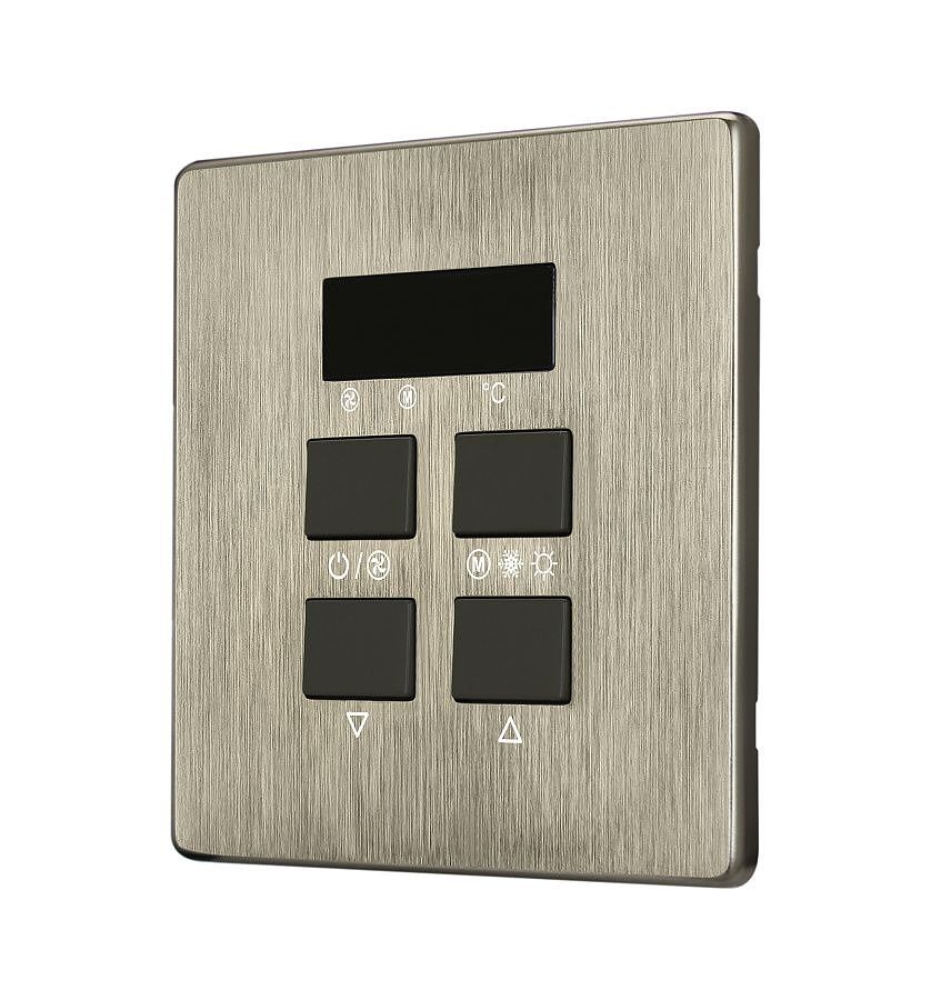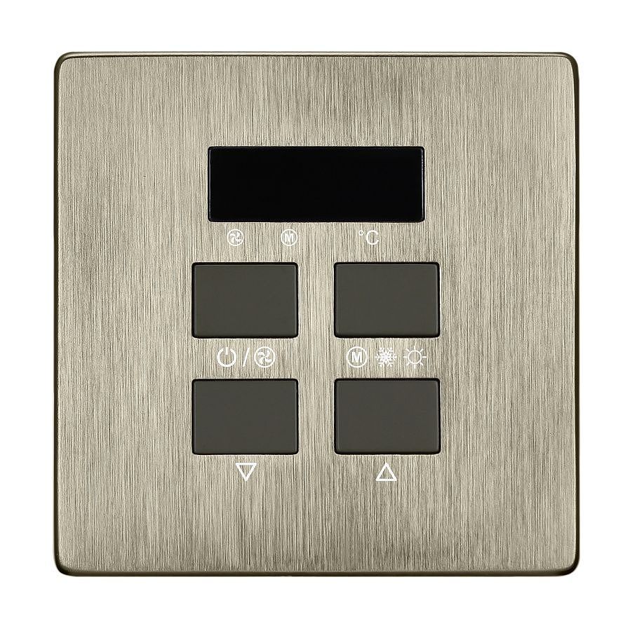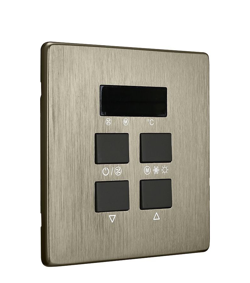 HDL-MPAC01.48 iElegance Series Air Condition Control Panel iElegance Series Air Condition Control Panel , Brushed Bronze finished plate, Regulate the temperature of room by controlling the speed, mode and on/off of the AC. Parameters Model HDL-MPAC01.48 SKU 421201 Bus Power 25 mA Width 63 mm Height 63 mm Depth 46 mm Weight 91 g Material CustomOne CustomTwo CustomThree CustomFour CustomFive Discount category A 3 pcs in stock in stock in stock You can buy these goods through registered HDL partner. Question to product