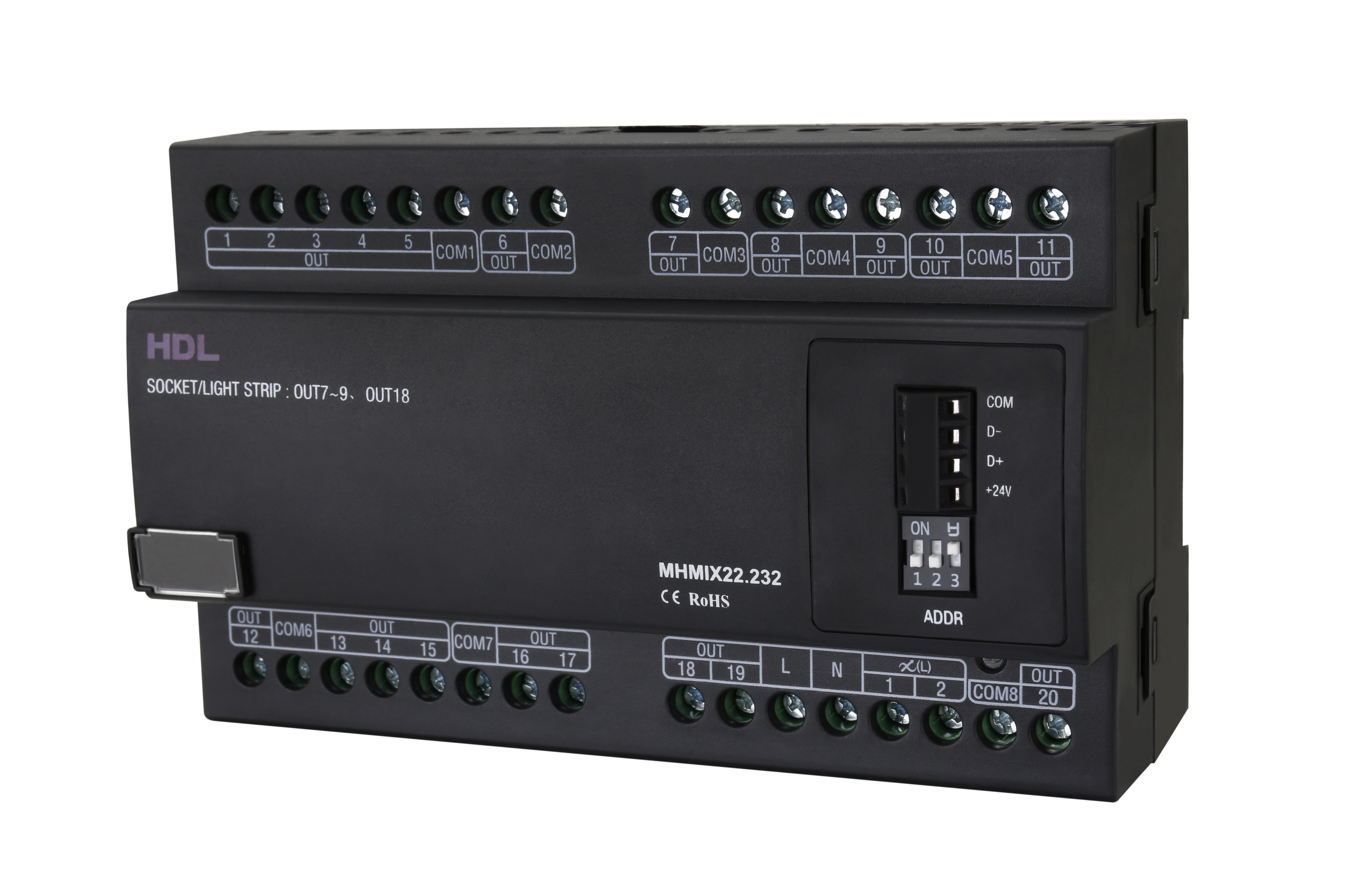 HDL-MHMIX22.232 22CH Hotel Room Mix Control Module 22CH Hotel Room Mix Control Module, DIN-Rail Mount,Totally 22 Channels, Relay: 16CH(5A) and 4CH(10A), Leading Edge Dimming: 2CH(0.5A). Parameters Model HDL-MHMIX22.232 SKU 825001 Bus Power 180 mA Width 144 mm Height 90 mm Depth 66 mm Weight 500 g Material CustomOne CustomTwo CustomThree CustomFour CustomFive Discount category A Out of stock in stock Out of stock You can buy these goods through registered HDL partner. Question to product
